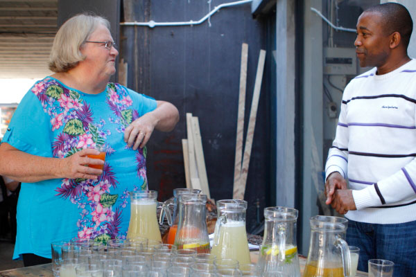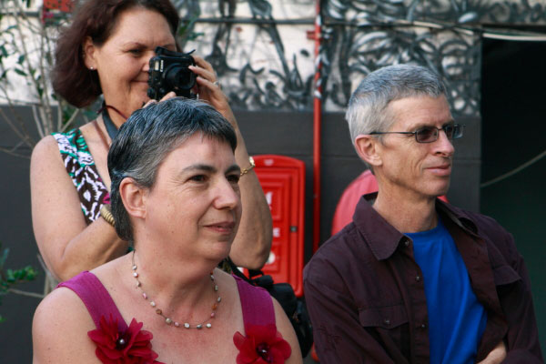 Ros Irlam (front left) is the administrative director of Crossing Bridges Africa. Here she is with her husband, James. Sandra van Rensburg is taking pictures.