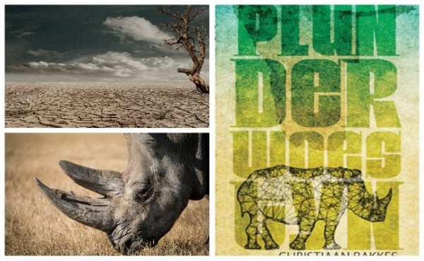 Plunderwoestyn fokus op die vergrype onder Namibië se natuurskatte en die moeilike omstandighede waaronder diegene wat dit probeer verdedig, werk en leef. Die hoofkarakter se rustige lewe in die Kaokoveld het drasties verander met die stroop van die eerste renosterkoei en die dood van haar kalf. Soos gewoonlik is korrupsie, mag en geld die groot dryfvere. Hierteenoor staan die hoofkarakter wat gedryf word deur regverdigheid, die voortbestaan van die wildernis en ’n nuwe liefde.