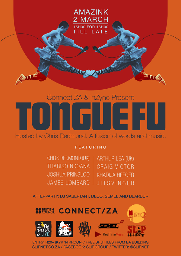 From 28 February to 4 March 2014, in partnership with Word N Sound Poetry Series and British Council Connect ZA, Tongue Fu will be making its debut on African shores with a three-city tour, namely to Johannesburg, Stellenbosch and Cape Town.