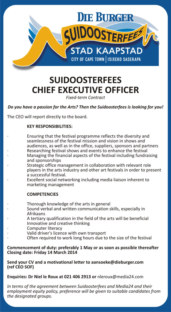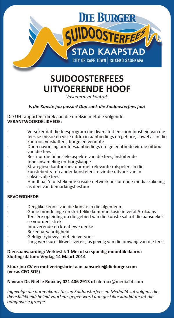 Pos beskikbaar: Uitvoerende Hoof – Suidoosterfees