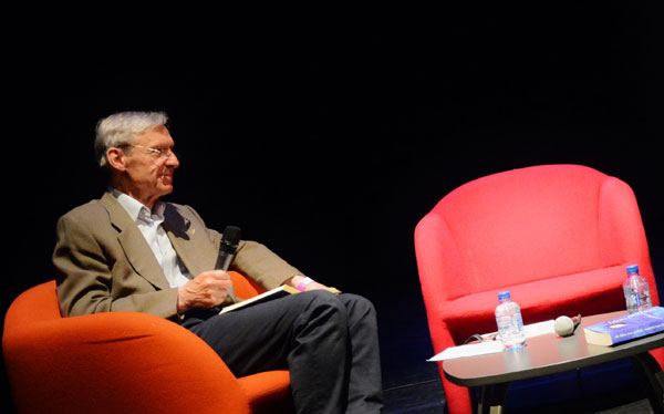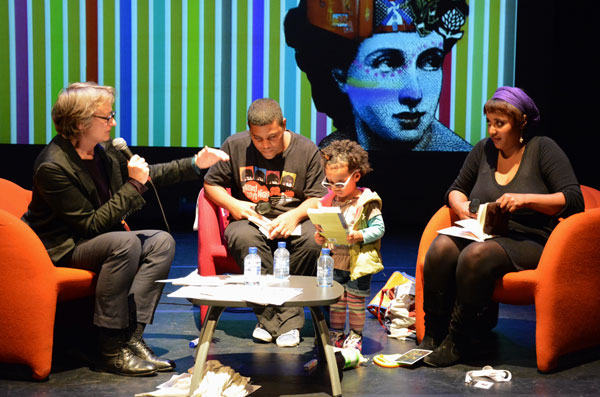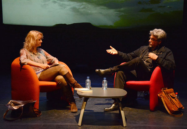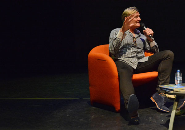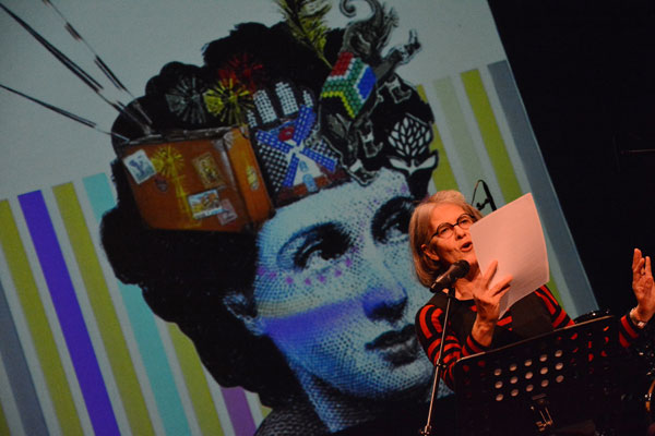 Die letterkundige Ena Jansen stel Antjie Krog aan die Nederlands- en Afrikaanstalige feesgangers voor.