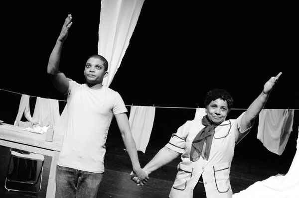 Akteurs Christo Davids en Vinette Ebrahim omhels mekaar na ’n kragtige vertolking.