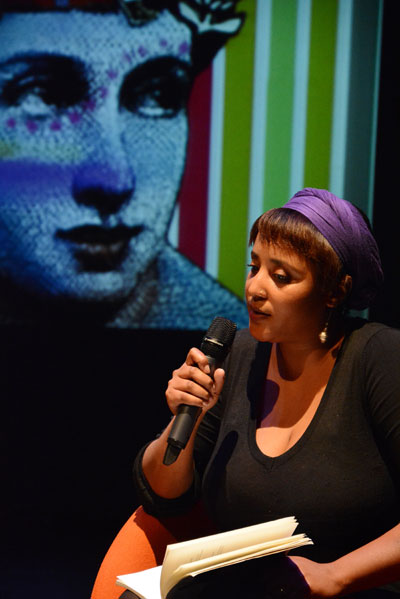 “Ek haal myself uit die tradisie en skep ’n nuwe een”: Ronelda S Kamfer lees uit haar digbundels voor.