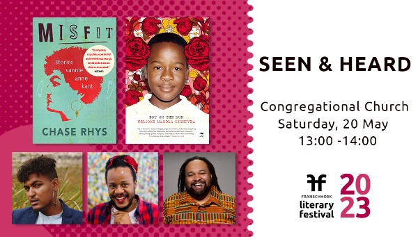 The list of Afrikaans authors taking part in this year’s festival also includes Chase Rhys who will discuss Misfit: Stories vannie anne kant – a collection of his acclaimed pieces in Kaaps for Rapport - where he explores identity, sexuality, family relationships and people who don't fit in. Lester Kiewit facilitates this session SEEN & HEARD (20 May 1:00 - 2:00 pm, Congregational Church) that also includes Welcome Mandla Lishivha who writes about navigating life in the township as a queer boy in Boy on the Run.