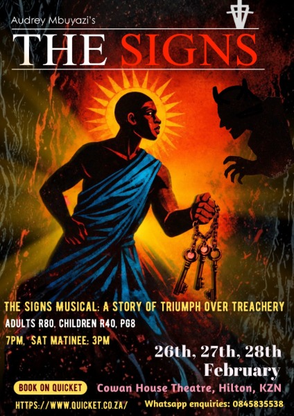 The signs is a dynamic, Broadway-style musical written and directed by Midlands creative Audrey Mbuyazi. This original production offers a fresh and unexpected retelling of a well-known story – from a provocative new perspective.