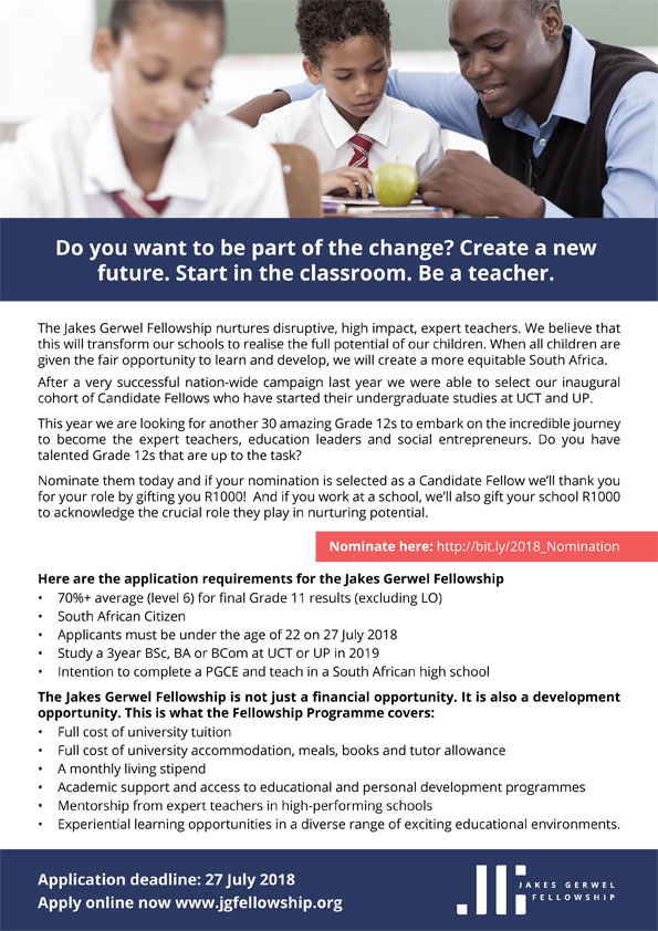 Press release: The Jakes Gerwel Fellowship: Applications open for 2019