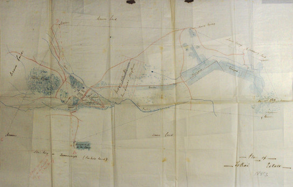 5 Bron: Wes-Kaapse Provinsiale Argief (met toestemming), WKPA, PWD 2/272 verw. 316, Public Works, ingebinde kaart, Tokailandgoed en omgewing met afgemerkte kwekery deur graaf M. de R. de Vasselot, September 1883.