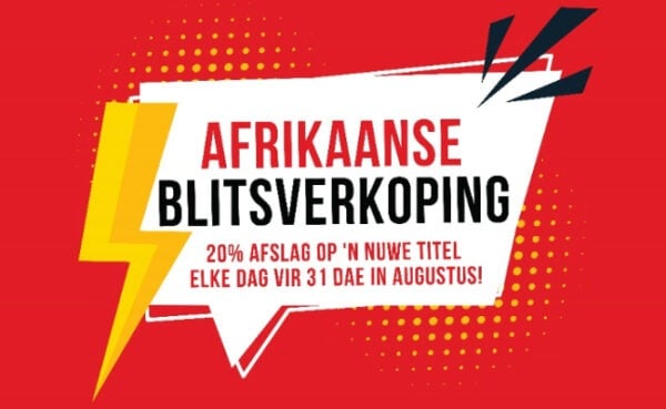 In Augustus vier Bargain Books die werk van ’n groot aantal van ons beste Afrikaanse skrywers deur daagliks afslag te gee op ’n bepaalde titel. Elke dag, ja, letterlik elke dag, van hierdie maand bied ons 20% afslag op ’n Afrikaanse boek.