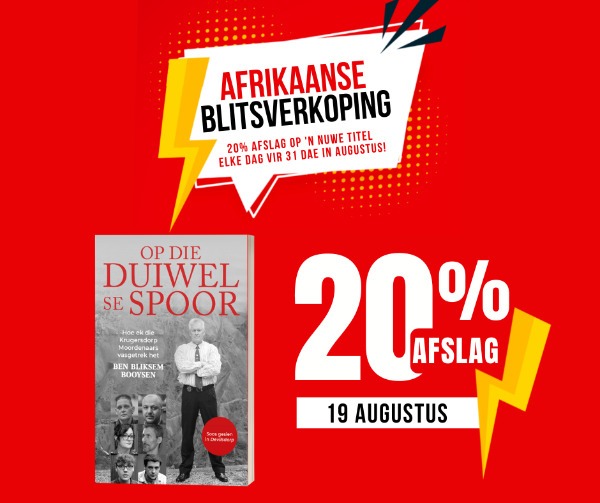Elke dag, vir 31 dae, gee ons 20% afslag op ’n nuwe Afrikaanse titel.