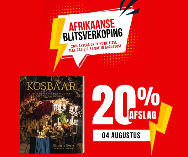 Elke dag, vir 31 dae, gee ons 20% afslag op ’n nuwe Afrikaanse titel.