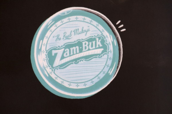 Op die agterblad is ’n blikkie outydse Zam-Buk-salf geteken, wat herhaal word op die laaste bladsy in die boek.