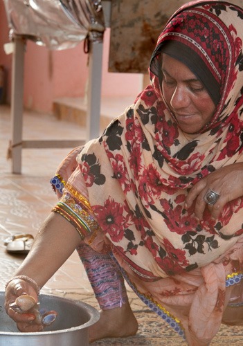 Dié dag toe ons die bult af ry tussen die terracotta huisies deur, is die strate vreemd verlate. Op die strand wemel dit van mense. Dit op sigself is vreemd, want in Oman meng mans en vroue nie in die openbaar nie. Dit moet ’n spesiale geleentheid wees as man, vrou en kind saam op die strand is. In die voetwaters van die terugtrekkende gety woel en wikkel, gesels en lag die dorpsmense.