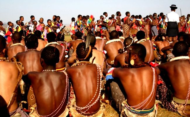 Die prinsesse, in tradisionele uitrustings versier met kralewerk in driehoeke van rooi, blou en geel, lei die eindelose groepies meisies op die veld. Hier en daar dans ’n meisie in ’n vaal gewaste doek om die lyf en ’n enkelstring krale om die kop. Al is daar nie geld vir woltossels en mooi doeke nie, hulle dans met oorgawe. Dit duur ure voordat die kilometers lange menslike sirkel uiteindelik gevorm is. Daar is geen orkes nie. Elke groep meisies sing en dans teen hul eie pas.