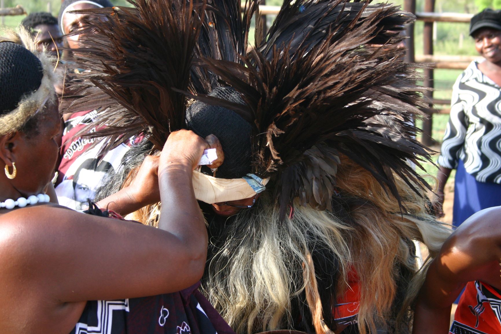 Dans-dans volg eers die jong manne; daarna die ouer mans met lendedoeke en velvoorskote. Lang stringe krale swaai ritmies om die swetende lywe. Dan verskyn die eerste bruidsmeisie in haar rooi, wit en swart doek met die Swazi-embleem. ’n Tweede en derde bruidsmeisie in rooi, wit en swart stap uit die bosse. Anna loop gebukkend, toegewikkel in ’n dik kombers. Haar gevolg steek haar speels-aggressief weg tot die prosessie in die middel van die kraal is. Die kombers word afgegooi en Anna staan in al haar prag ten aanskoue van die huweliksgaste. Ten spyte van die hitte dra sy ’n handgemaakte sjaal van dertig beessterte. Haar hooftooisel van swart volstruisvere wieg sag in die windlose somersmiddag.