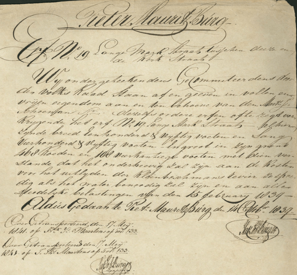 Pieter Mauritz Burg den 27. Februarij 1839.