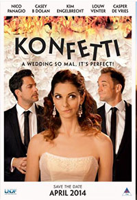 Dit is nou maar so dat ’n mens eiegoed met ’n skerper oog bekyk as ingevoerde produkte, heel moontlik omdat jy gou agterkom wanneer die bekende nie outentiek uitgebeeld word nie. By Afrikaanse flieks vrees ek altyd die cringe-faktor (ook die verveling-faktor), maar in Konfetti is daar absoluut niks waarvoor ek my geskaam het nie. Die balans tussen die komiese en die ernstige is nét reg, met ’n klomp akteurs wat uithalerspel lewer.