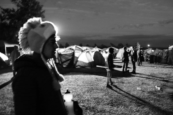 Twee meisies wat langs my kampeer, beloon hulself elk met ’n joint ná die tent opgeslaan is. Elke af en toe dra twee of drie mense ’n vriend die kamp binne, ’n arm oor elke skouer. Party vriende is minder altruïsties en los die vriend of vriendin net daar waar hulle val.