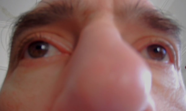 Deur ’n wyehoeklens in iemand se gesig te druk, kry die kyker ’n vreemde hoek, ook distorsie. Die blik is direk en onverbiddelik. In Engels sou ’n mens kon sê: To the viewer it is in your face, because the camera is so close to the actor’s face.