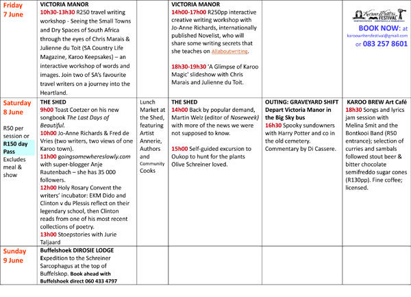0Here is the programme of the 9th Schreiner Karoo Writers' Festival – which takes place in Cradock from the 6th to the 9th of June 2019.