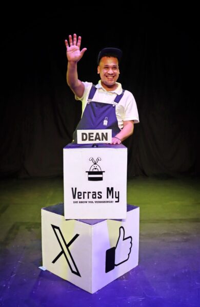 Thankfully is Earnestine nou ’n thing of the past (mense wat Dude! Wa’s my bakkie? gesien het sal wiet!) want Dean se kop is wee vol muisneste en haa naam is Joy! As ’n result van audience participation het ôs vi Joy oppie stage ontmoet, oek dankie aan Dean se social media influencer profile wat gelei het tottie introduction van hierrie love birds. Joy moes gou met Dean se dance moves byhou, en baie gou sien ôs, dankie aan She-Earl, hoe Joy se true colours uitkô. Unfortunately het Dean nie baie in daai area van sy liewe since sy bakkie days evolve nie!