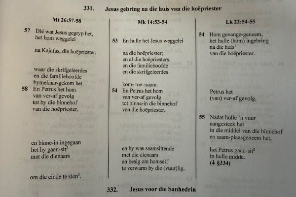 Dankie, Johan. Dit was boeiend om te sien hoe die boek vir Hermie duidelik 'n lewenstaak was. En as 'n mens dink dat hy drie dekades daaran geskryf het, sekerlik ook 'n liefdestaak. Ek het die lees geniet, juis omdat dit so gerieflik is om onmiddellik die drie tekste saam te kon bekyk. En om dan te besef hoe elke evangelis op sy eie manier die Jesus-verhaal in sy konteks aktueel gemaak het.
