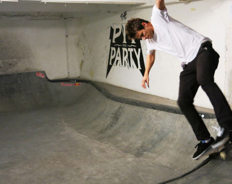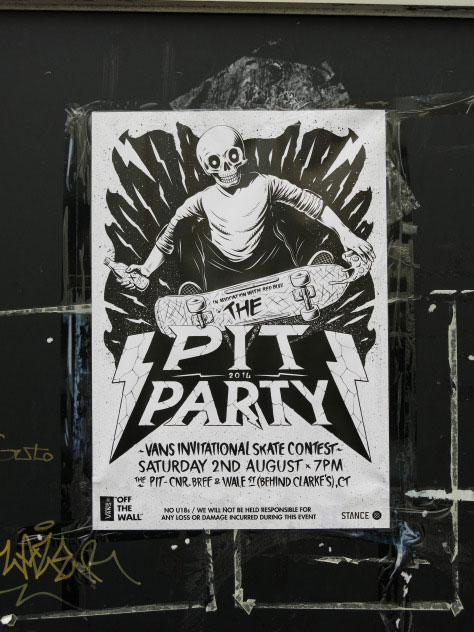 The Pit, a skating bar in Cape Town's city "bowl", is hosting the Vans invitational skateboarding competition on a cloudy Saturday evening. Skaters speed from one end of the fluorescent-lit bowl to the other, performing grinds and wall rides at each end.