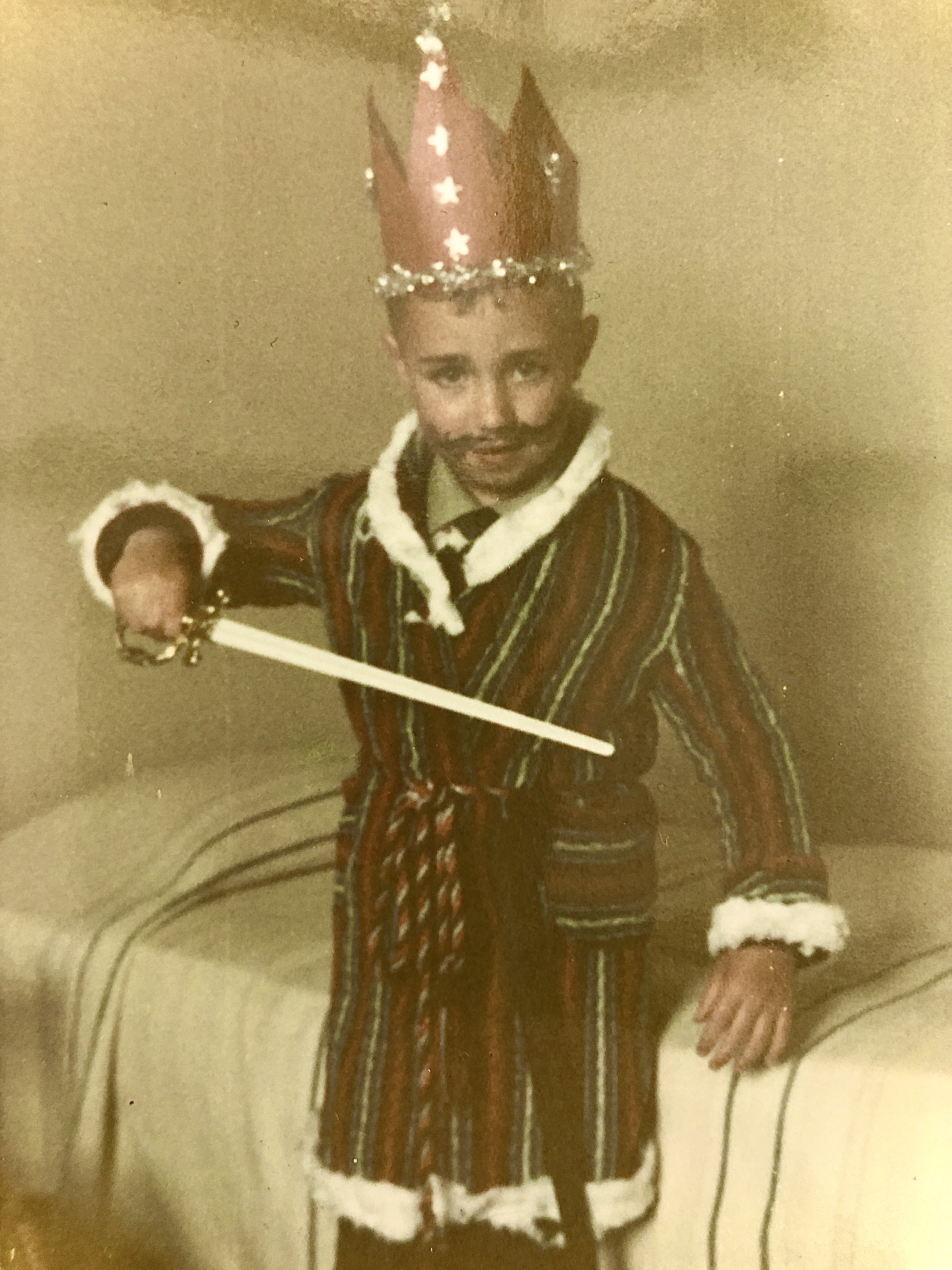 Ek het die foto ontdek eers nadat ek daaroor geskryf het en besluit om dit op die voorblad te gebruik. Ek was deel van twee operettes op laerskool en dit het my hele lewe verander. Die tweede een was met meer moeite aangebied, maar vir die eerste een moes ons self met ons ouers die kostuums maak. Ek was in my kamerjas met ’n papierkroon en ’n plastiekswaard – dit was die lelikste kostuum op aarde, maar ek was in vervoering en het dit vir dae gedra en my pa forseer om ’n foto te neem.