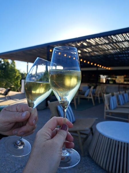 Ons aand begin vroeg op die nuwe Spier-hotel se restaurantdak met ’n glas Cap Classique.