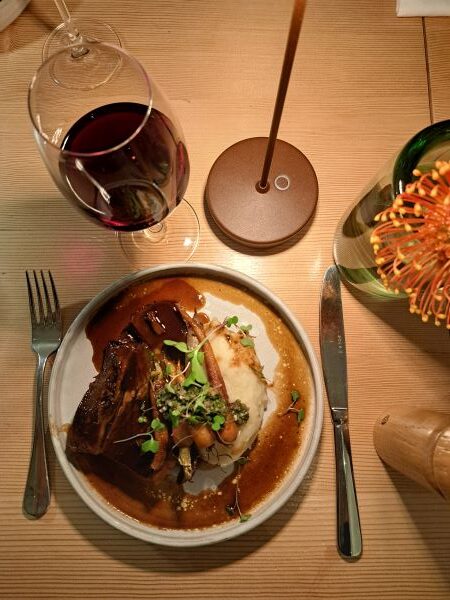 Hoe veelsydig en divers is hierdie land van ons nie? ’n Kroegmeisie maak vuur in ’n pragtige vuurdrom; die liggies in die tuin kom met skemer aan; en die hemele verkleur met spatsels oranje, pienk en blou met die Hottentots-Hollandberge wat alles omsoom. Onder in die restaurant Veld is sjef Craig Paterson besig met die laaste afrondings voor aandete en elders op die plaas is personeel besig om glase, wyn en handgemaakte sjokolade uit te pak in afwagting van die kuiermense wat op pad is.