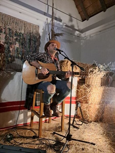 Die musikante begin een na die ander arriveer, instrumente oor hul skouers, op pad na ’n hoekie op die plaas wat in ’n klein, intieme teatertjie omskep is.