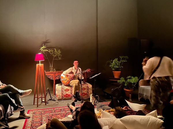 In die Soil Room sit ons op kelims en kussings en luister na die amper fluisterende Luh’ra.
