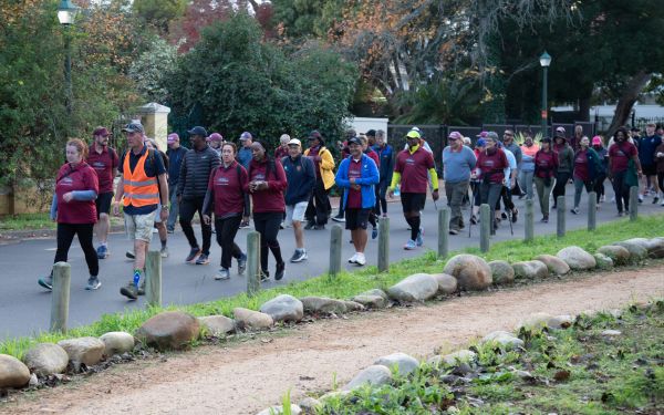 Die stap het by Die Stal, Alumni-klubhuis by Coetzenburg begin. Jenive Moses van Visit Stellenbosch en Ngazibini Tsitywa van die Sentrum vir Maatskaplike Geregtigheid help met die registrasie van al die stappers.