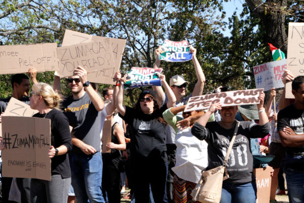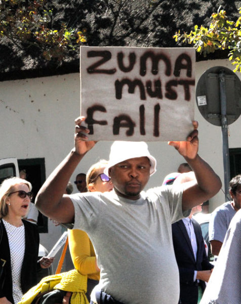 Jacob Zuma het ons op 7 April 2017 weer een gegee: van gewone Suid-Afrikaners wat in massas opruk en saamstaan in protes teen ’n korrupte leier. In Kaapstad het na beraam word 55 000 mense na die parlement gestroom om te eis dat Zuma afgedank moet word. Save South Africa reken dat ongeveer 40 000 mense hulle optog na die Uniegebou ondersteun het. Selfs ondanks die feit dat die SAKP en Cosatu hul optogte gekanselleer het, het mense in hul duisende regoor die land opgeruk, nie as deel van georganiseerde politieke optogte nie, maar as spontane uitdrukkings van ongelukkigheid met die politieke leierskap. En alhoewel dit Zuma se naam en gesig op die plakkate is, behoort die ANC kennis te neem. Hulle is op terme geplaas. Baie mense wat dalk gehoop het dat die ANC die regte ding sal doen, besef nou dis elke man vir homself.