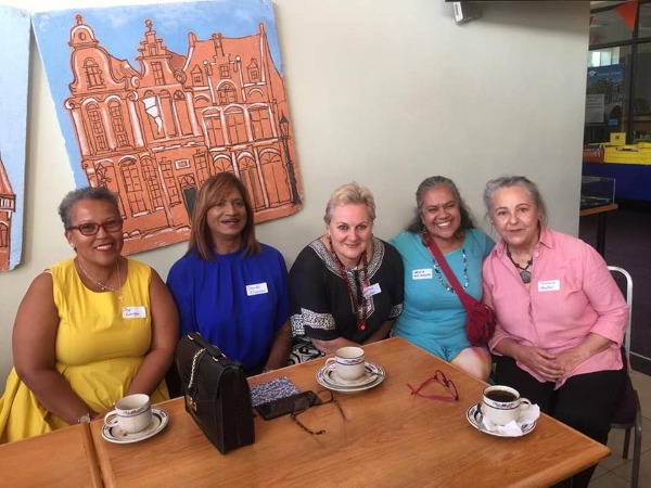 ’n Groep van SA Women in Dialogue, Joy Lange, Shada Francis, Marthe Muller en Fadeela Ally-Schmidt, saam met Theresa Muller van South African Conversations.