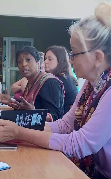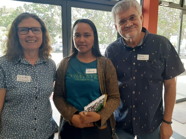 Kubeshini Govender van die Wes-Kaapse Onderwysdepartement praat oor die belangrikheid van behoorlike onderwys vir jong mense oor burgerlike verantwoordelikhede en regte. Agter haar staan Menán van Heerden van LitNet.