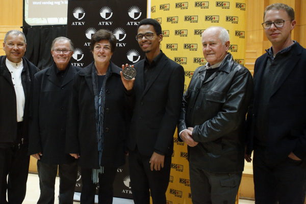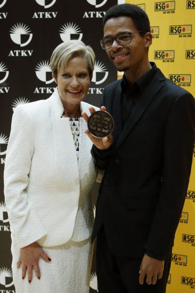Sulayman Human was die algehele wenner en het ’n wentjek van R65 000 en ’n erepenning ontvang. Hier is hy saam met Deidre le Hanie, die besturende direkteur van die ATKV, wat die pryse oorhandig het.