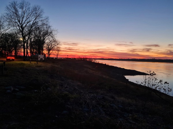 Een van my kosbaarste herinneringe is ’n aand naby Memphis toe ons die son oor die majestueuse Mississippi-rivier sien sak het. Ons het in ’n hoë uitkyktoring gestaan, in ’n State Park waar daar geen ander mens te sien was nie – en ons kon vér sien uit daardie toring. Daar was wel ’n paar motors en woonwaens in die park, een van die woonwaens selfs feestelik versier met stringe rooi liggies, maar geen menslike beweging nie. Ná ons deur die nag verskillende motors voor die rooiligkaravaan hoor stilhou en vertrek het, het ons die volgende oggend bespiegel oor wat snags dáár aangaan ...