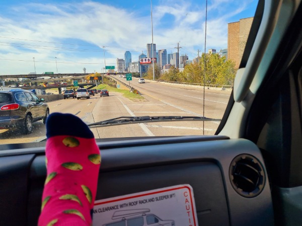 Steeds op soek na ’n radiostasie ry ons verby Dallas, Texas
