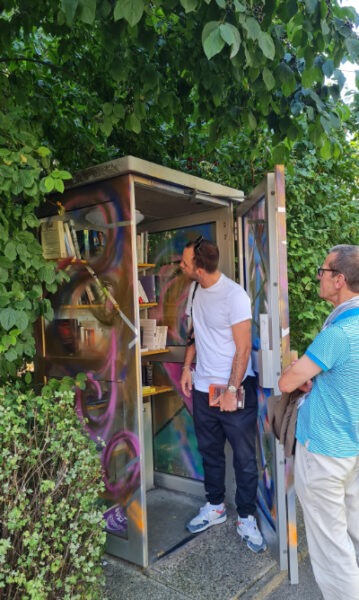Gratis biblioteek in ’n ou foonhokkie in Lausanne