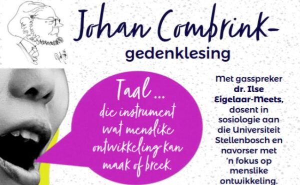 Byrri 22ste Johan Combrink-gedenklesing het ek met hierri hipotetiese gees binnegegaan om wee’eens oo taal te dink. Die aand wôd aangebied deu die Vriende van Afrikaans, ’n taalprojek van die ATKV. Vanjaa se hoofspreker is lecturer, ma van drie, en sosioloog, Ilse Eigelaar-Meets, met haa aanbieding: “Taal ... die instrument wat menslike ontwikkeling kan maak of breek”. In haa aanbieding beweeg Eigelaar-Meets na ’n baie meer reflektiewe praatjie en dink oo haa eie reis met taal as navorser, as mentor en as mens. Deur haa humor, kritiese insigte en persoonlike anekdotes te deel, remind sy vi ôs met conviction van taal se ability asse instrument wat menslike ontwikkeling kan óf sluit óf ontsluit.