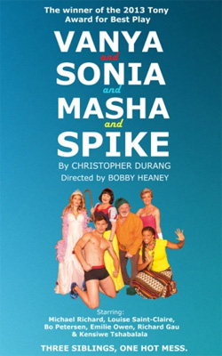 Hulle het hulle lewens gewy aan die versorging van Vader en Moeder tot aan hulle dood. Ja, dié twee intellektuele was nou betrokke by amateurteater. Hulle het geglo dat allerlei klassieke werke opgevoer moet word. Hulle gee hulle kinders die name van Tsjechof-karakters. So heet die ware suster byvoorbeeld Masha (Louise Saint-Claire). En dis sy wat onverwags opdaag en nou’s dit drama-drama, soos Cassandra telkens aankondig. Masha is die eintlik clichéagtige rolprentster (seker aanvaarbaar in ’n komedie): selfgesentreerd, oordonderend; het vyf mislukte huwelike agter die blad. Haar roem is aan die taan. Sy kommandeer almal op vir ’n kostuumpartytjie by invloedryke bure. Almal moet háár ondersteun. Sy gaan Sneeuwitjie wees. Belangrik: soos in die Walt Disney-weergawe. Dit sal ook blyk dat sy die huis wil verkoop. Nog ’n tragedie in Vanya en Sonia se lewens. Maar ... was Masha nie tog al die jare van hulle opofferende versorging van die ouers nie húlle redding nie? Sy wat vir alles betaal het?