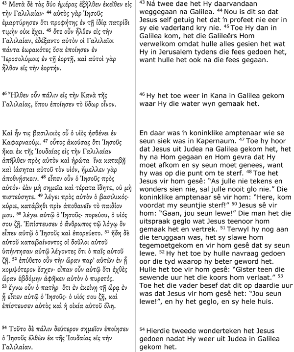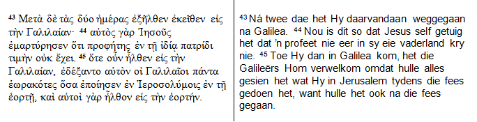 14 Volgens Houghton (2008:224) bots hierdie uitleg van Augustinus met v. 45, maar Augustinus het waarskynlik die sinnetjie exceperunt eum Galilaei (“die Galileërs het Hom ontvang”) nie as geloof verstaan nie.