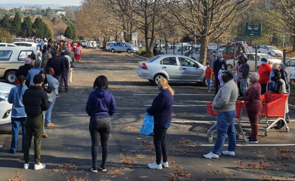 As I drove down the main street into the business heart of Howick with food to last for a few days, my heart rejoiced once more at the sight of a packed car park outside the library. I knew it could not mean that everyone had suddenly started reading, but that it offered the promise of food. I was saddened by the sight of a young African child eating an orange out of a bin, and even more saddened by a man with a professional video camera filming the scene. As I waited at the robots, I saw queues of cars gridlocked trying to get into Howick. I realised that they were in search of petrol at the BP garage. I could see them mouthing words through the windscreens. I did not need to be able to lip-read. I knew what those angry lips were saying. Words that no doubt were uttered behind closed doors in a minority of South African homes. As I found a parking and headed in the direction of the library, I asked a young man with an “I love Howick” T-shirt where the promise of food was. He, however, said that he did not know where I could get food. These were all cars of normal citizens of Howick who had come out in their numbers to clean up the town.