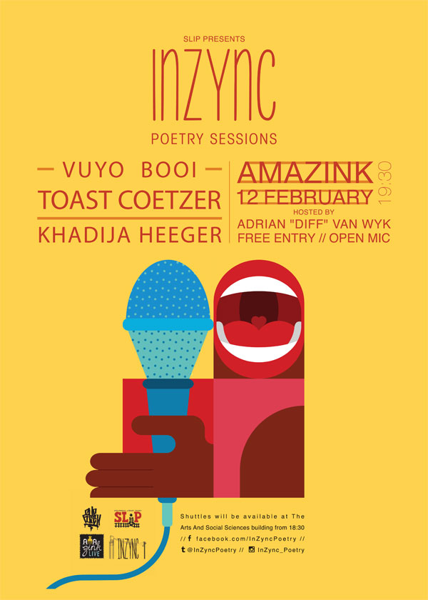 Inzync is back for their 4th year of hosting the best experienced and emerging poets in the Cape, bringing you a masala of poetries and languages all mixed together.