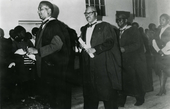 Benjamin Mahlasela (centre) in a procession at the school in Makhanda that carries his name (Photo: Cory Library, Rhodes University, Makhanda)