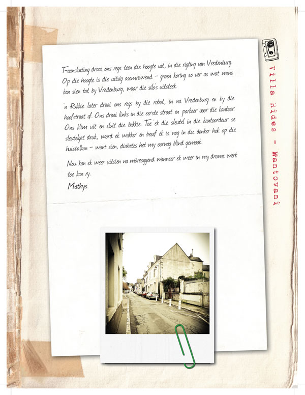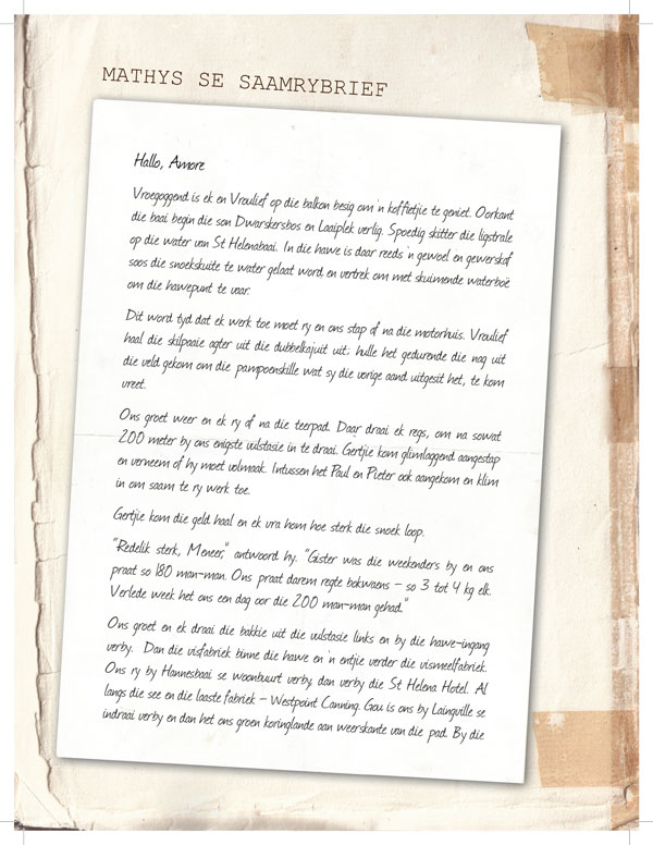 Ek het saamrybriewe geplaas wat ek daagliks in my program lees. So probeer almal ook maar deur hulle briewe en ritte huis toe sin maak van hulle lewens.