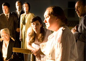 - Binnekamer met Amanda Strydom: Amanda is voor die mikrofoon, Janine Neethling agter die klavier en Deon Opperman in die agtergrond as skrywer en regisseur.