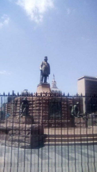 Sonder die een ligpunt, is daar veiligheidsheinings rondom monument op plein, wat so 70 jaar gelede staangemaak was op plein.