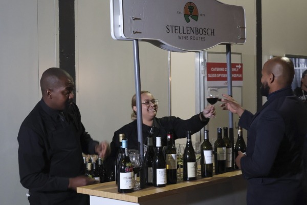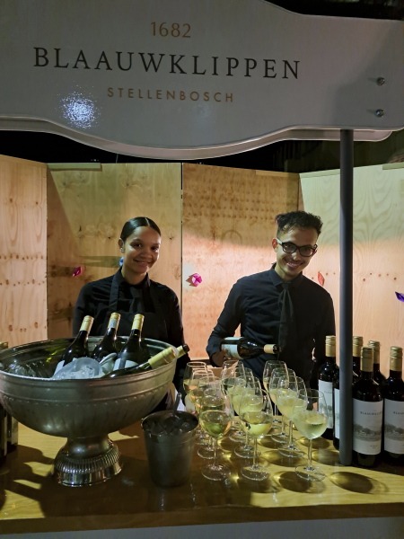 En met jasse en truie en dik reënbaadjies het die gaste kom kuier. Daar is eers in die voorportaal oor ’n glas wyn van ’n paar bekende wynplase – Alto, Dorp Street, Spier en Blaauwklippen – en ’n paar onder die Stellenbosch Wynroetes-vaandel gekuier.
