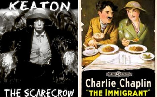 Die twee komedies, The scarecrow (Buster Keaton, 19 min, 1920) en The immigrant (Charlie Chaplin, 24 min, 1917), is saam minder as 'n uur lank, maar gee 'n uitstekende idee van die twee meesters se verskillende style. Buster Keaton se "deadpan" gesig en sy fisiese grapjas-Vaudeville-komediestyl kontrasteer skerp met Charlie Chaplin (as "The tramp") se uitdrukkingsvolle gesig en emosiebelaaide toneelspel, maar al twee films eindig op 'n soortgelyke hoë noot - ek durf niks meer verklap nie! Die twee films wys rug aan rug Saterdag 7 Maart om 14:00 en weer Maandag 9 Maart om 18:30.